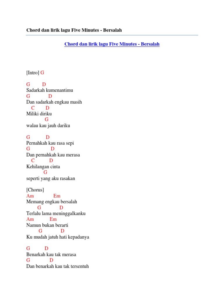 Chord Dan Lirik Lagu Five Minutes Bersalah By Chord Zila Issuu