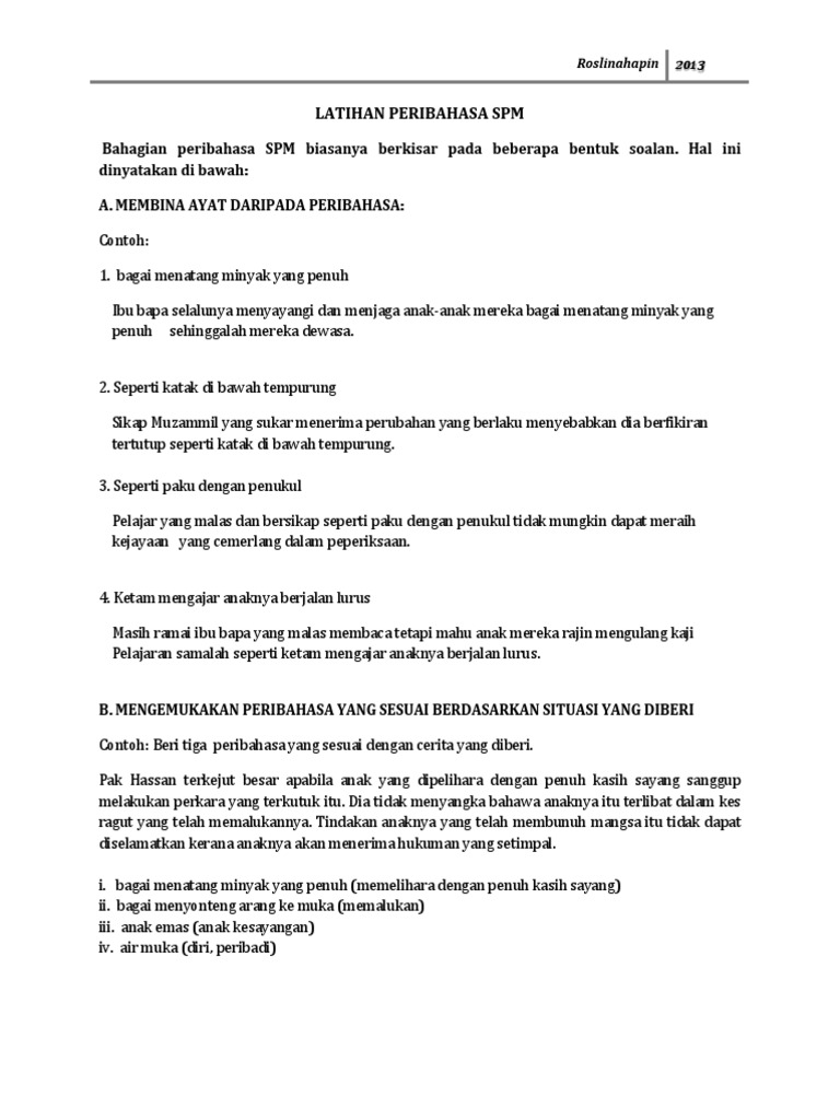 Latihan Peribahasa Spm Dinyatakan Di Bawah A Membina Ayat Daripada Peribahasa