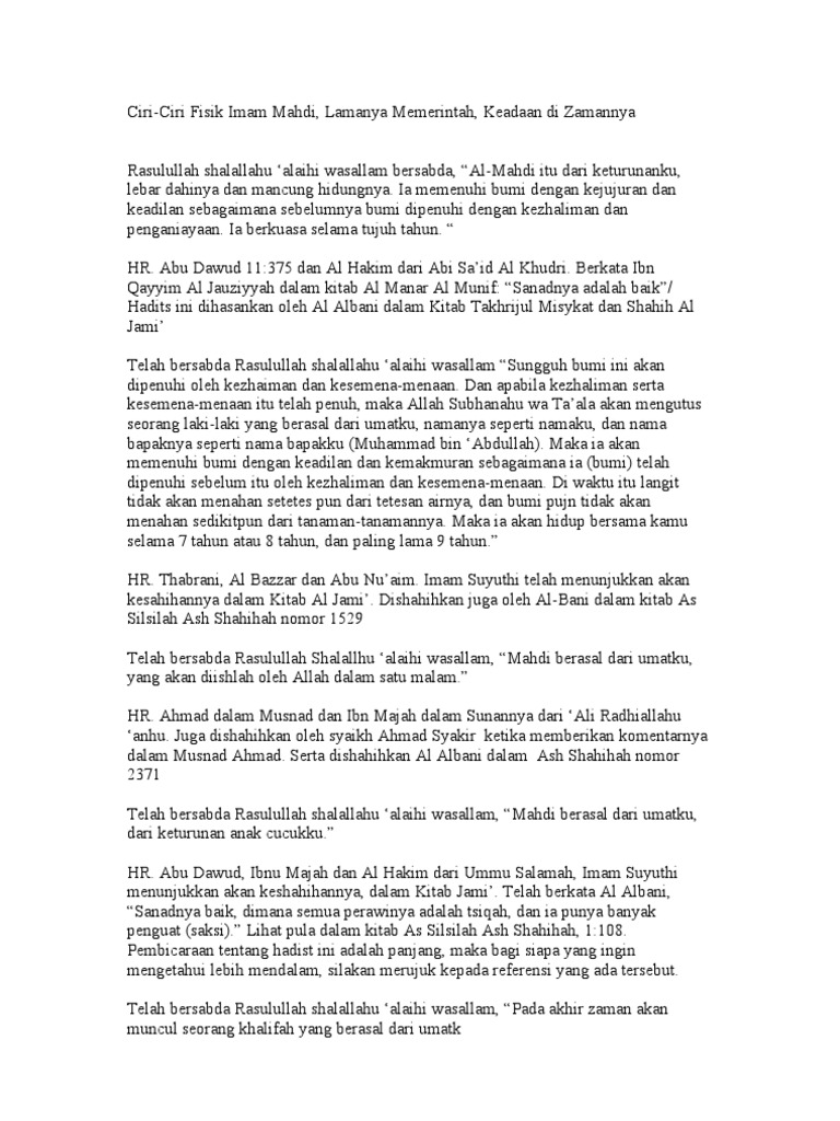 Nasab Ciri Ciri Serta Kemunculan Imam Mahdi Di Akhir Zaman