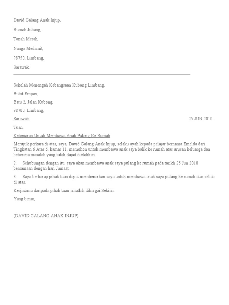 Contoh Surat Rasmi Permohonan Keluar Asrama Rasmi Ro Cute766
