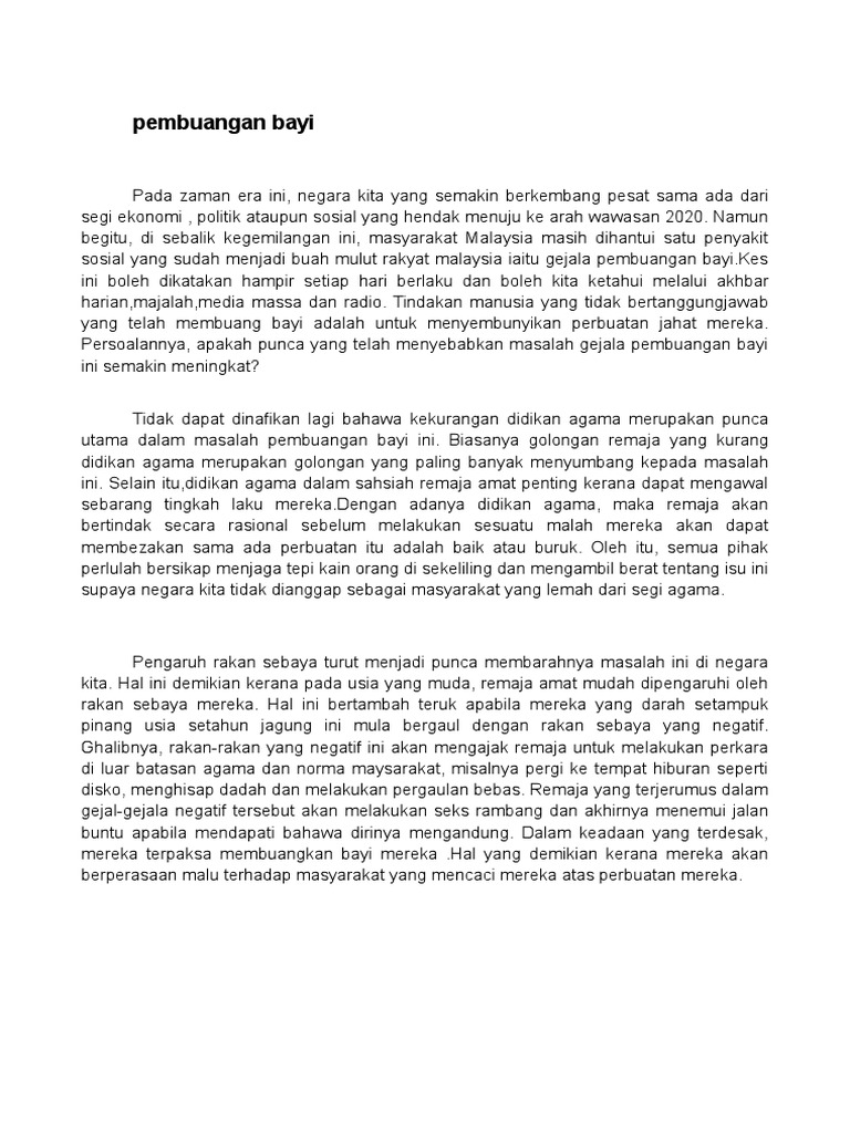 Contoh Tugasan Harian Moral Pembuangan Bayi