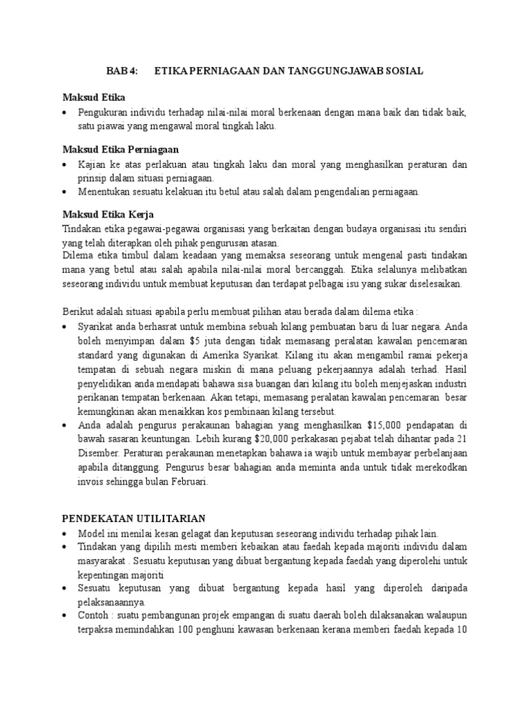 Pengajian Perniagaan Bab 5 Etika Dan Tanggungjawab Sosial Kertas 2 Pdf Document