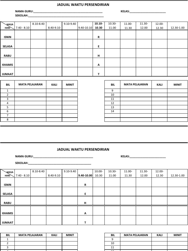 Jadual Waktu Psk Kosong Doc Document