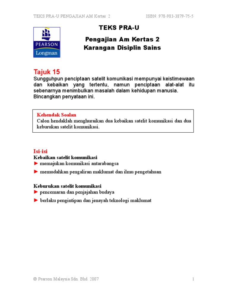 Doc Esei Pengajian Am Teknologi Satelitteknologi Satelit Penting Kepada Pembangunan Khairul Ernesto Academia Edu