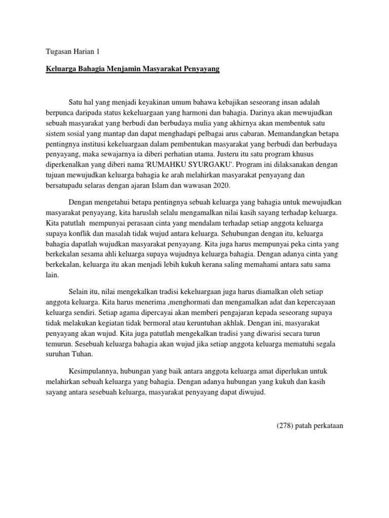 Tugasan Harian 1keluarga Bahagia Menjamin Masyarakat Penyayang