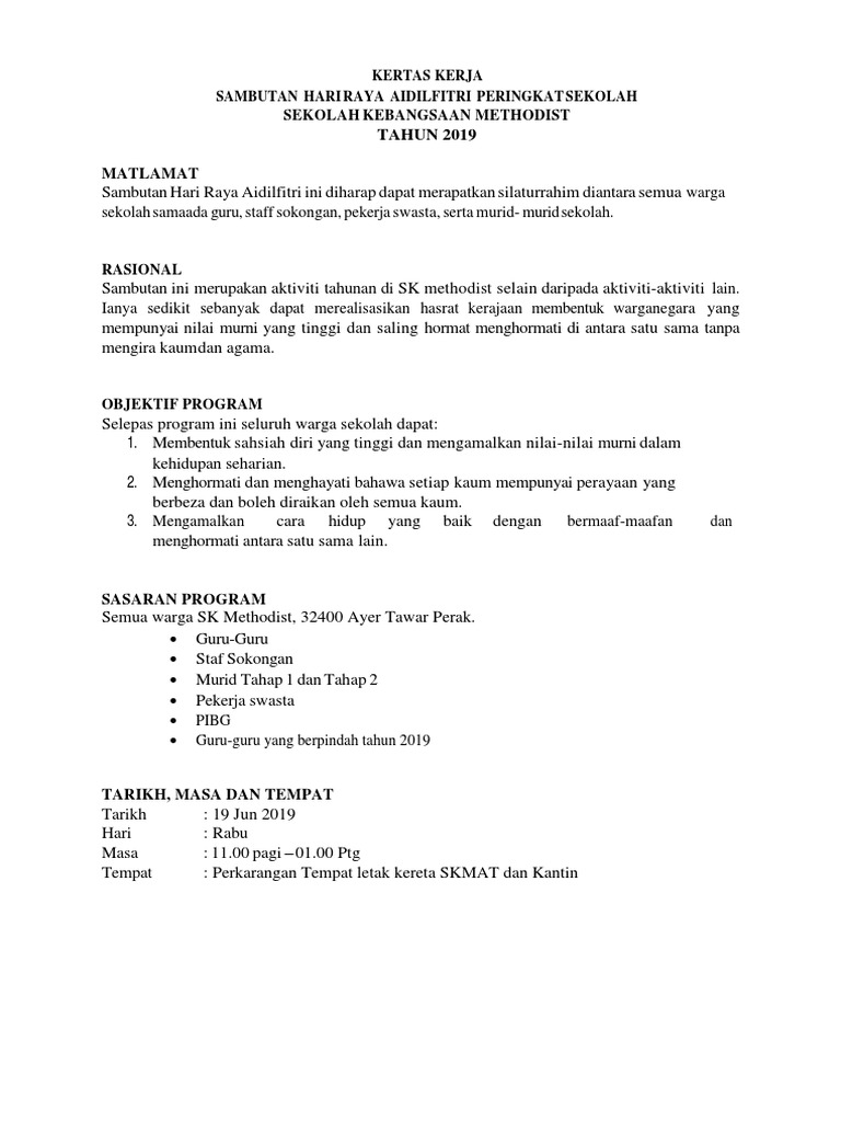 Kertas Kerja Sambutan Hari Raya 2019 Pages 1 6 Text Version Anyflip