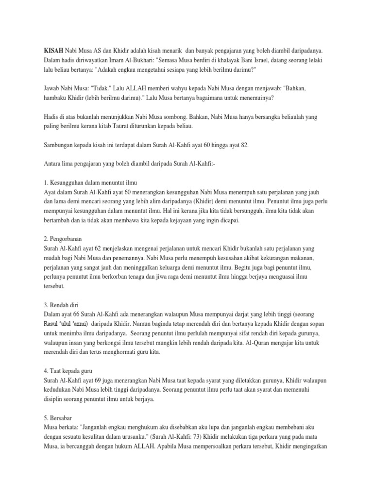 Pdf Ibrah Kisah Nabi Khidir Dalam Surah Al Kahfi Terhadap Pengajaran Dan Pembelajaran Alaf Baru