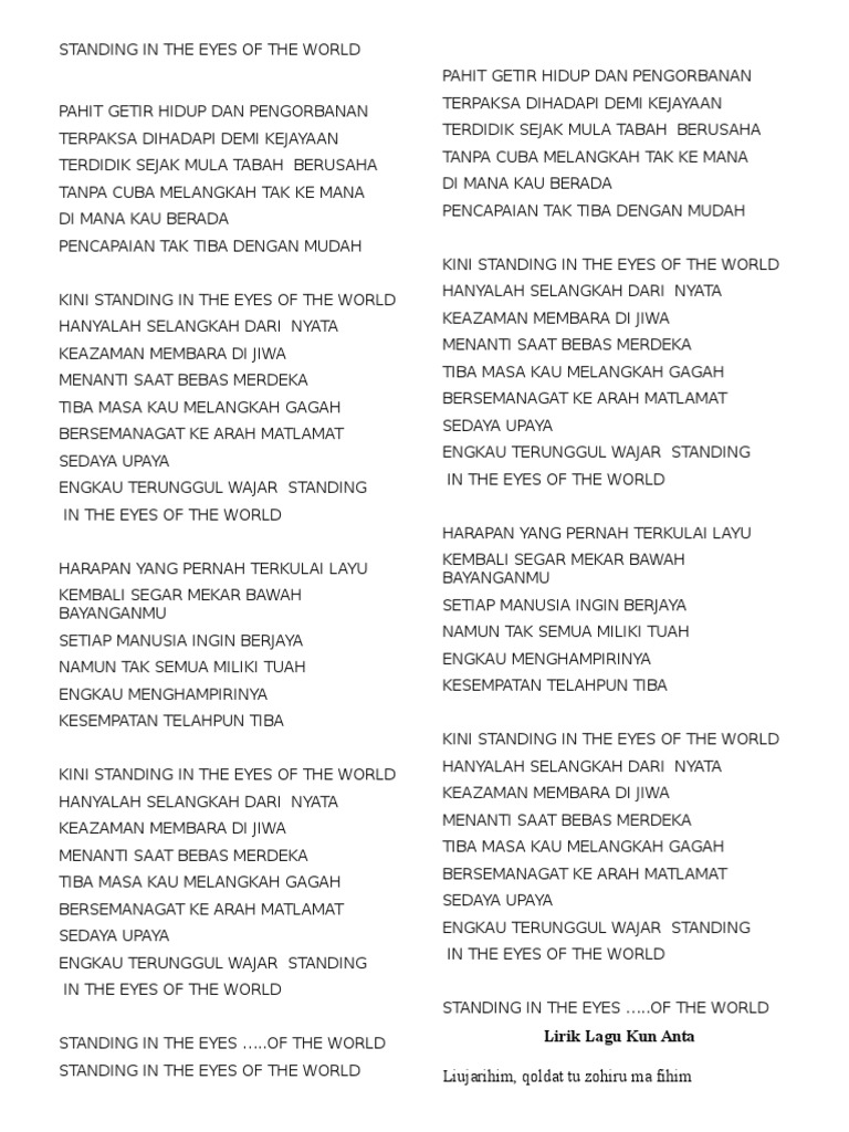 Lirik Lagu Kini Standing In The Eyes Of The World