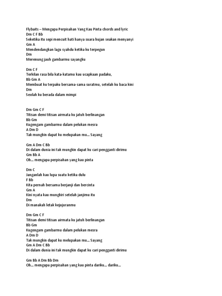 Mengapa Perpisahan Yang Kau Pinta Flybaits Lyrics And Music By Flybaits Arranged By Buluh Tumpang