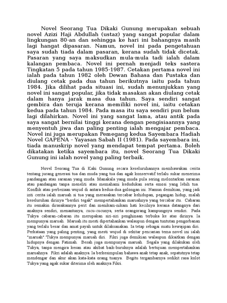 Novel Seorang Tua Dikaki Gunung Merupakan Sebuah Novel Azizi Haji Abdullah