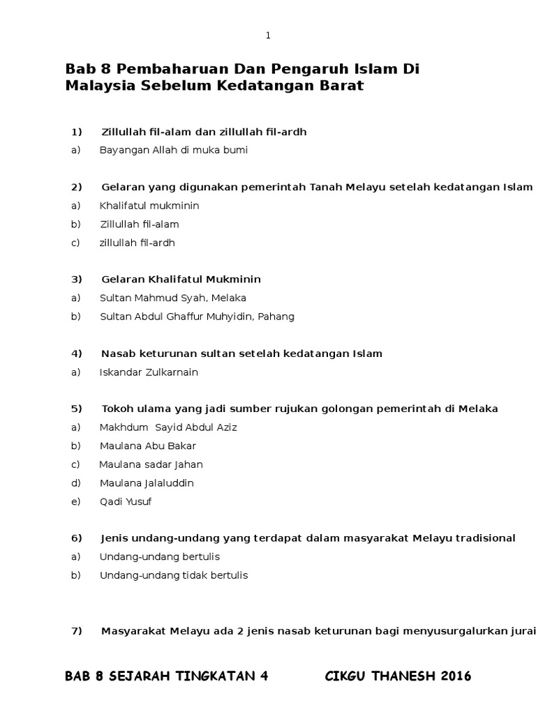 Ting 4 Bab 8 Pembaharuan Dan Pengaruh Islam Di Malaysia Sebelum Kedatangan Barat