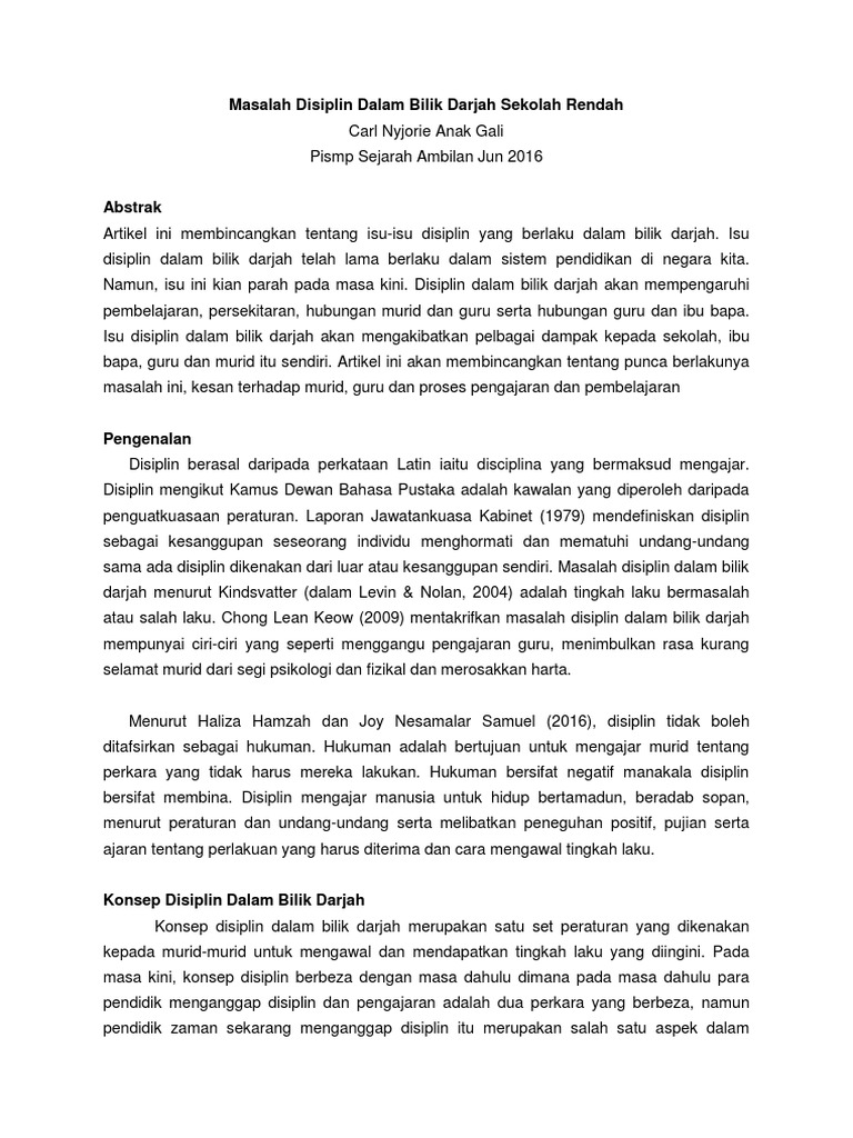 Pengurusan Tingkah Laku Dan Disiplin Jurnal