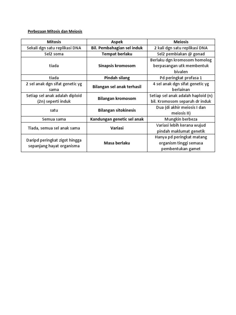 Perbezaan Mitosis Dan Meiosis Tingkatan 4