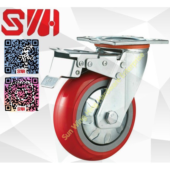Triple S 5 Inch 125mm Heavy Duty Red Pu On Iron Core Castor Wheels Trolley Roda Troli Rigid Swivel Brake 250kg Lazada