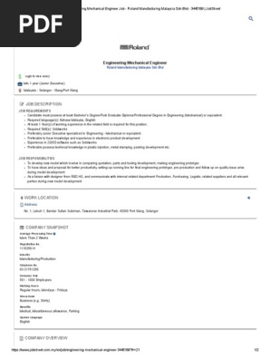 Engineering Mechanical Engineer Job Roland Manufacturing Malaysia Sdn Bhd 3445189 Jobstreet Mechanical Engineering Engineering