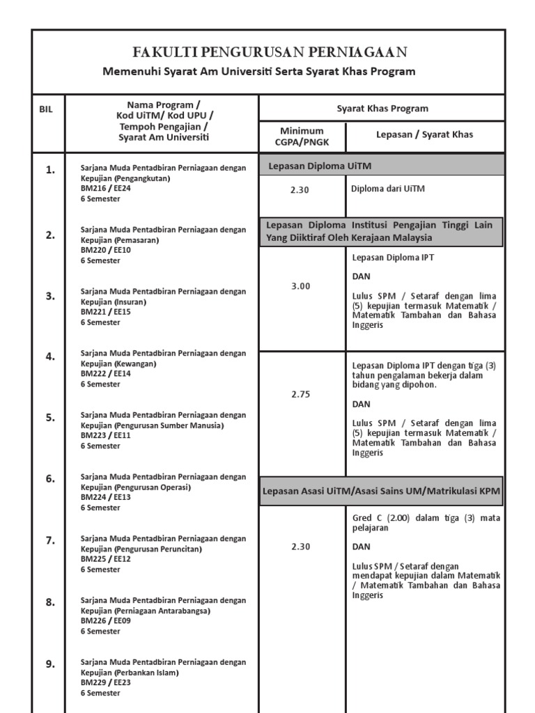 Syarat Kemasukan Uitm