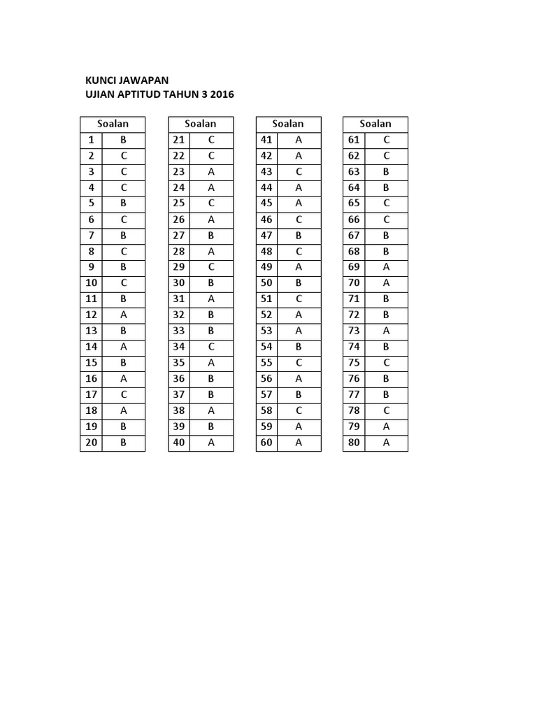 Kunci Jawapan Ujian Aptitud Tahun 3 2016