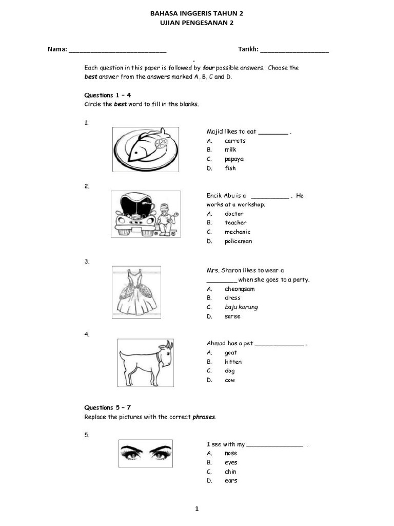 Contoh Soalan Ujian Diagnostik Tahun 1 Bahasa Inggeris Helowinj
